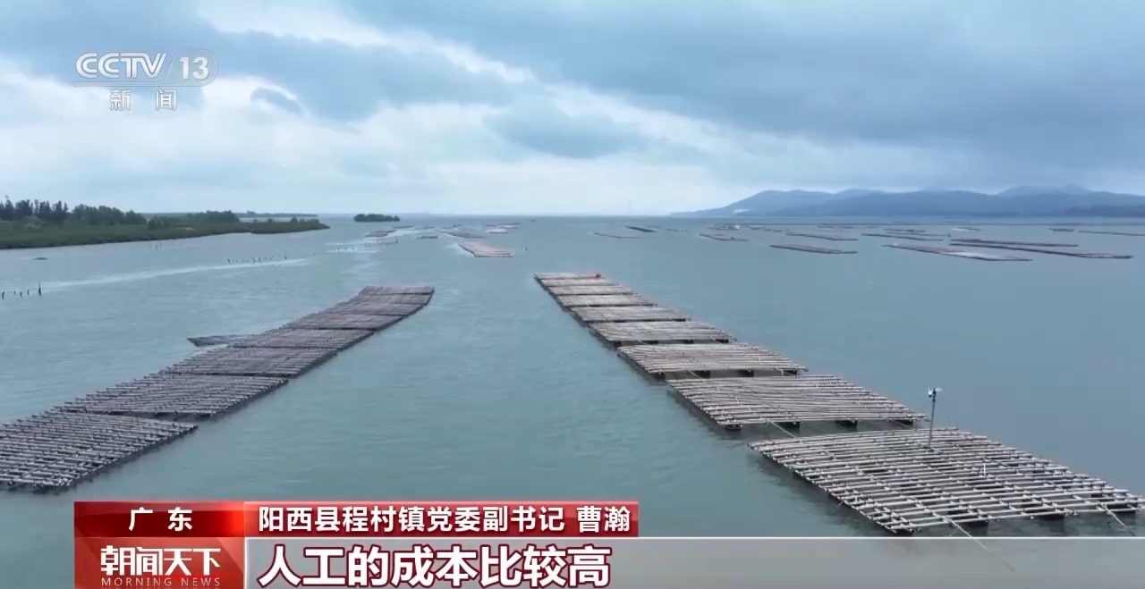 陽(yáng)西縣程村鎮(zhèn)黨委副書(shū)記 曹瀚:以前的立柱式養(yǎng)殖必須要有水泥樁,還要打樁進(jìn)去,人工的成本比較高。延繩吊養(yǎng)生蠔的時(shí)候,我們能夠及時(shí)根據(jù)海水咸濕度情況進(jìn)行轉(zhuǎn)移,有利于蠔盡快長(zhǎng)大。