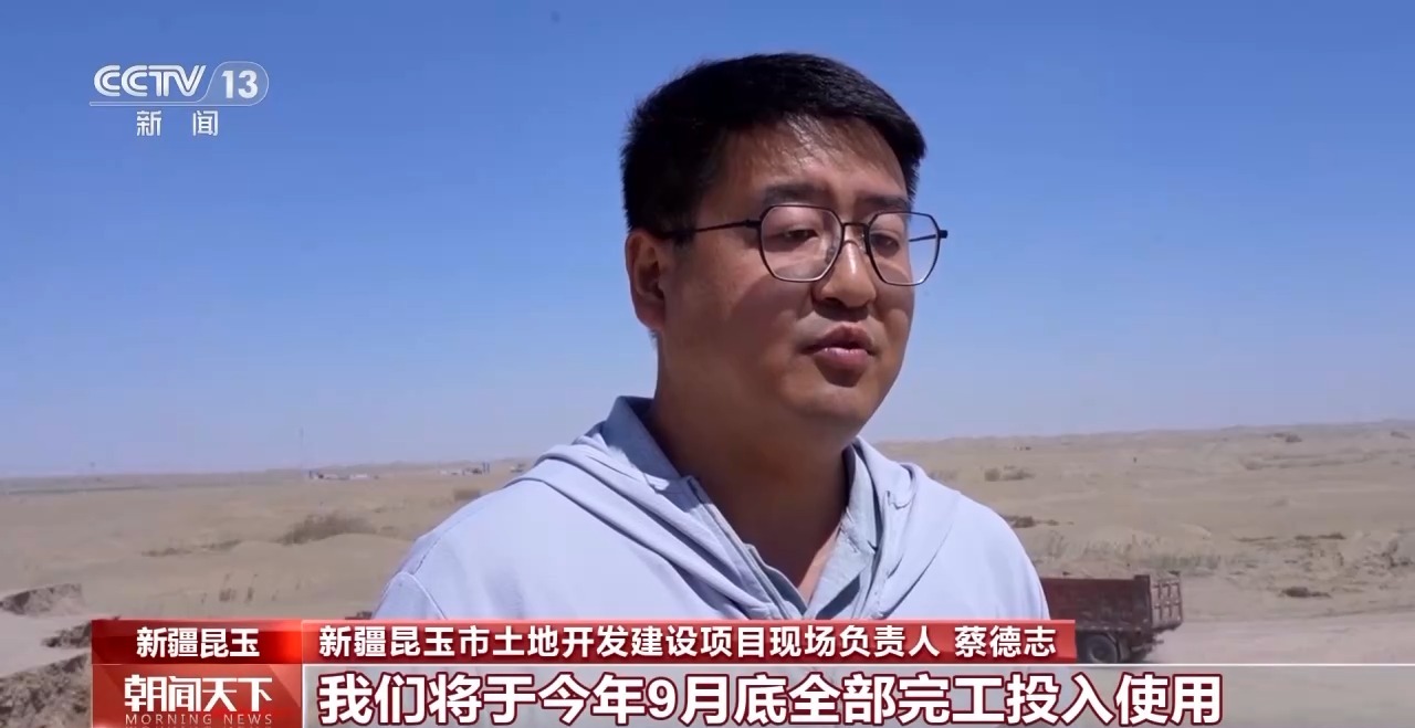 新疆昆玉市土地開發(fā)建設(shè)項(xiàng)目現(xiàn)場負(fù)責(zé)人 蔡德志:我們將于今年9月底全部完工投入使用,已完成現(xiàn)場總進(jìn)度的75%。