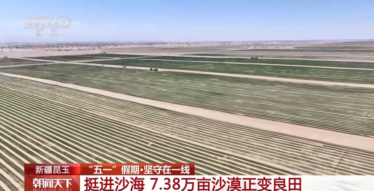 當(dāng)大多數(shù)人享受悠閑的假期時(shí),鏖戰(zhàn)在沙海深處的勞動(dòng)者沒有停歇。在位于塔克拉瑪干沙漠南緣的新疆昆玉市,7.38萬畝土地開發(fā)建設(shè)項(xiàng)目進(jìn)入攻堅(jiān)階段,上百臺(tái)裝載機(jī)、平地機(jī)來回穿梭進(jìn)行平沙作業(yè)。