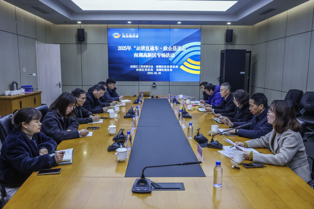 2025年2月25日,浙江省嘉興市南湖區(qū)工商聯(lián)召開“親清直通車·政企懇談會”,為企業(yè)排憂解難,助力民營企業(yè)穩(wěn)健發(fā)展。新華社記者 徐昱 攝