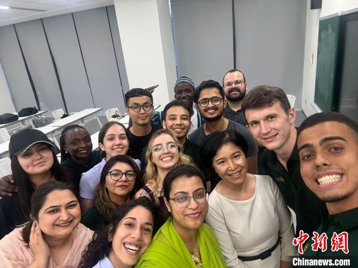2024年11月15日,尼古拉(右二)在中國農業(yè)大學三亞研究院就讀時,與老師和同學的合影。(受訪者 供圖)