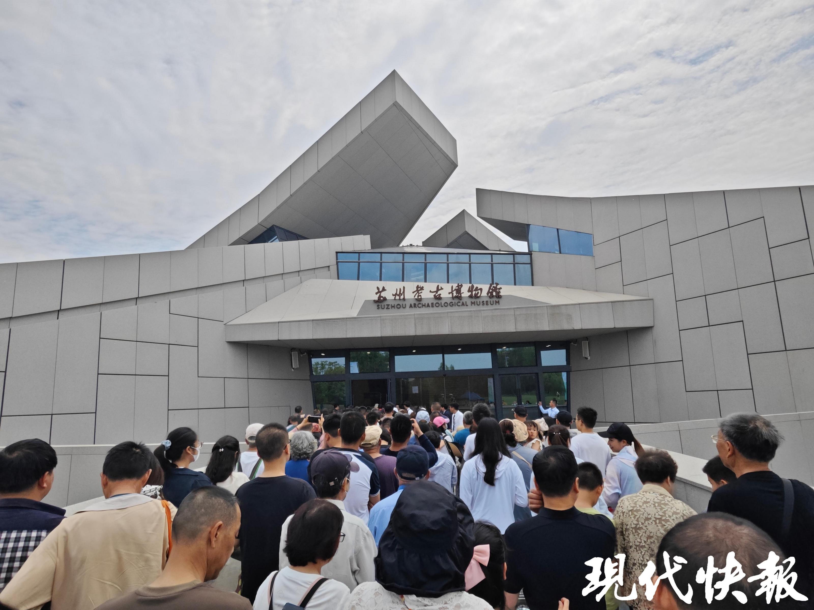 5月17日,江蘇首家考古博物館——蘇州考古博物館正式對公眾開放?!皼]想到一開門就迎來了大客流考驗,一天接待了8000多名觀眾?!碧K州考古博物館館長、蘇州考古所所長程義坦言,沒想到一開館就成了網(wǎng)紅?!疤K州考古博物館和蘇州博物館老館面積差不多大,最大承載量在6000人左右,8000人次屬于超負(fù)荷運營?!?/p>