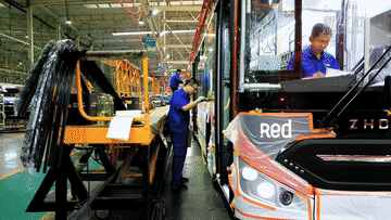 在山東聊城經(jīng)濟技術開發(fā)區(qū)的中通客車股份有限公司,機器轟鳴,各條生產(chǎn)線都開足了馬力。據(jù)了解,這家企業(yè)生產(chǎn)的新能源客車主要出口歐洲、南美、中東、東南亞等國家和地區(qū)?!拔覀円源罂蛻?、大訂單、大項目為開路先鋒,持續(xù)提高全球市場銷量,擴大“中國制造”品牌影響力。”該公司客車研究院產(chǎn)品主管任獻鋒說。
