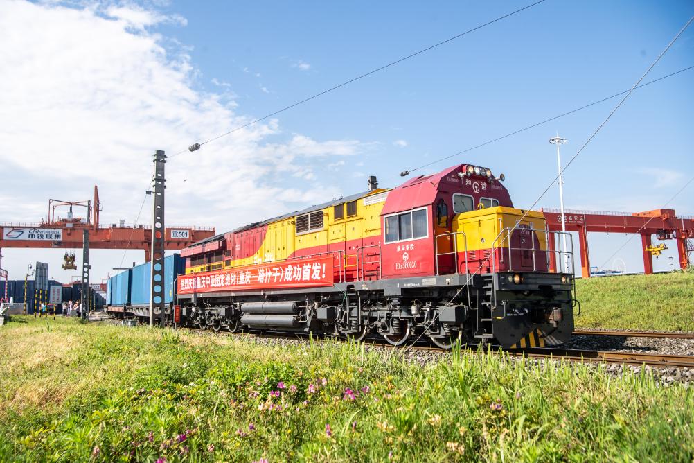 4月20日上午,一列滿載“重慶造”聚酯切片的中亞班列,從重慶團結(jié)村中心站緩緩駛出,這是重慶首次開行圖定中亞班列,此后將以每月2列的固定頻次實現(xiàn)常態(tài)化開行。新華社記者 唐奕 攝