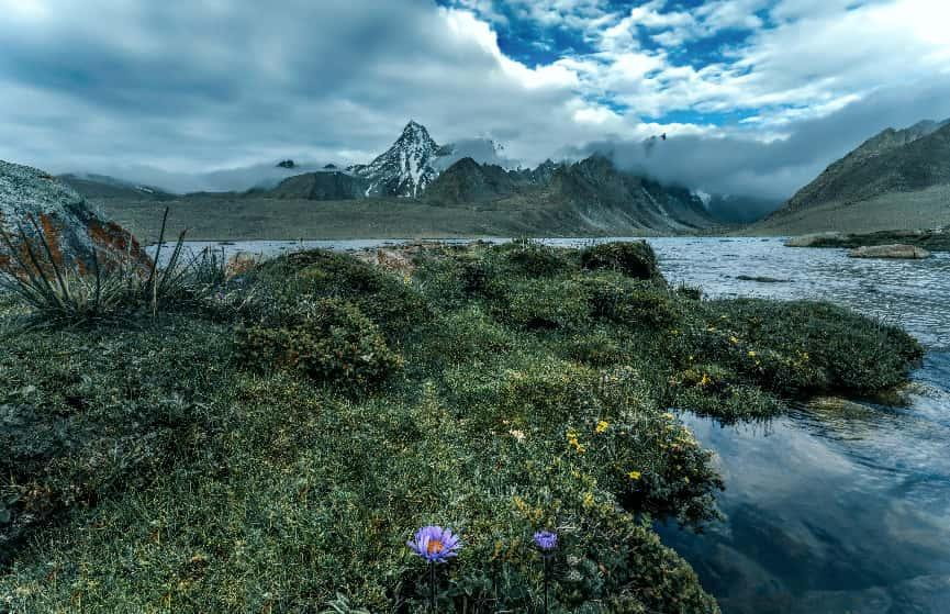 為了捕捉冷布崗日主峰的壯美,我們?cè)谛谐讨性庥鲋T多挑戰(zhàn)。在無(wú)人區(qū)行駛時(shí),車輛輪胎意外爆裂,我們?cè)诤0胃哌_(dá)5800米的地方體驗(yàn)了給汽車換輪胎的經(jīng)歷。這個(gè)經(jīng)歷太難忘了,我們基本從下午持續(xù)到天黑才最終成功把輪胎換好。但是由于天色已晚,我們無(wú)法繼續(xù)前行,只能在兩輛車上過(guò)了一夜。