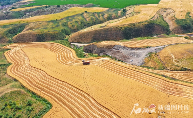 2024年6月24日,在新源縣則克臺(tái)鎮(zhèn)則克臺(tái)村的麥田里,隨著大型收割機(jī)駛過(guò),麥穗、秸稈有序分離,一顆顆麥粒從收割機(jī)出料口傾瀉而下,裝進(jìn)運(yùn)糧車(chē)?yán)铩埼耐z