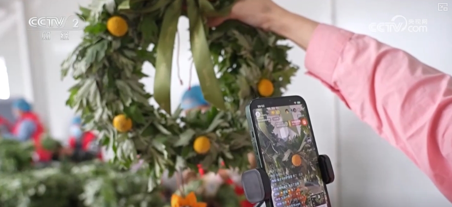 在江蘇新沂的一家艾草企業(yè)直播間里,主播正熱情地介紹新款艾草文創(chuàng)產(chǎn)品,線上訂單源源不斷。一旁的生產(chǎn)線上,工人們也正在熟練地制作艾草花環(huán)。端午臨近,這款艾草花環(huán)日均銷量突破萬件。