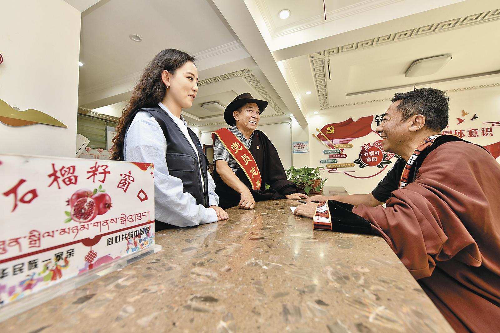 “你看,這是藏語(yǔ)版的宣傳冊(cè)。之前您反映惠企政策的宣傳手冊(cè)看不懂,青海警官職業(yè)學(xué)院的老師為我們做了翻譯,這下能看懂了吧!”在位于西寧市城中區(qū)南灘街道建新社區(qū)的扎閣林民族歌劇院內(nèi),社區(qū)黨委副書(shū)記楊麗手拿雙語(yǔ)宣傳冊(cè),開(kāi)心地找到了經(jīng)理完么才讓。