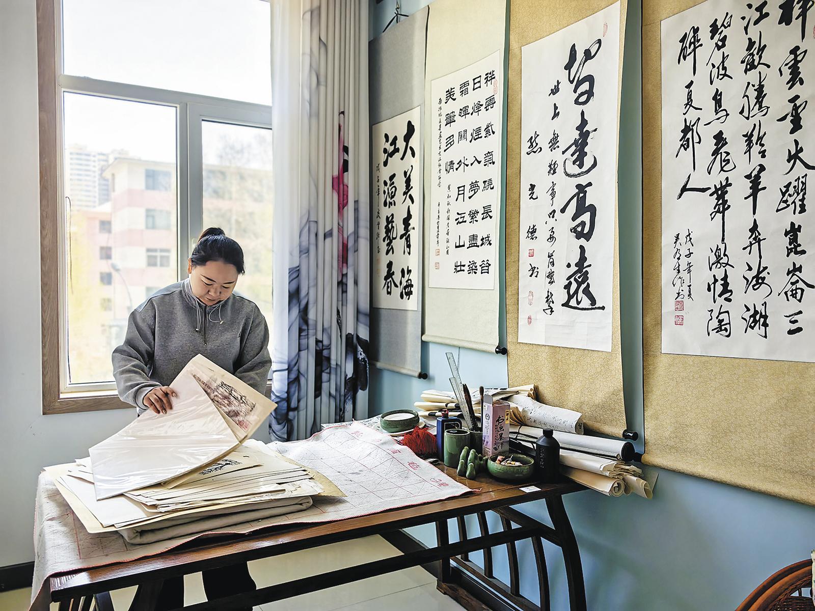 馬哈力麥的鉤織工作室制作花束毯。 本報(bào)記者 賈泓 攝