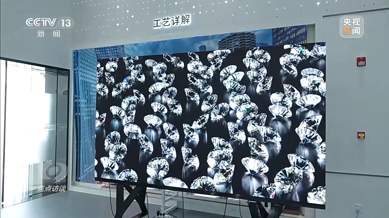 維信諾Micro-LED技術(shù)負(fù)責(zé)人、成都辰顯光電有限公司總經(jīng)理 黃秀頎:這款產(chǎn)品歷經(jīng)了8年的研發(fā)時間,到現(xiàn)在推出全球最新的135英寸TFT基Micro-LED(顯示屏)。它的特點,亮度非常高,而且色彩非常細(xì)膩,還原度很高。但是這塊屏是拼接出來的,上面總共有2400萬顆LED發(fā)光點,大的135英寸里面有200片屏,每個屏還要把它組裝成箱體,這里有25個箱體??梢愿鶕?jù)客戶的需求定制大小,只要把箱體拼上去就可以無限擴展,現(xiàn)在拼縫控制的是幾十個微米量級,大概就是頭發(fā)絲直徑的五分之一。