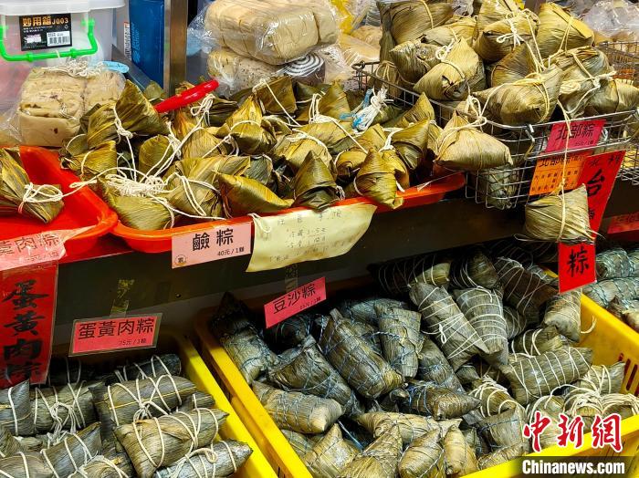 臺(tái)灣端午節(jié)連假期間,臺(tái)北南門市場(chǎng)的粽子種類豐富。中新社記者 張曉曦 攝