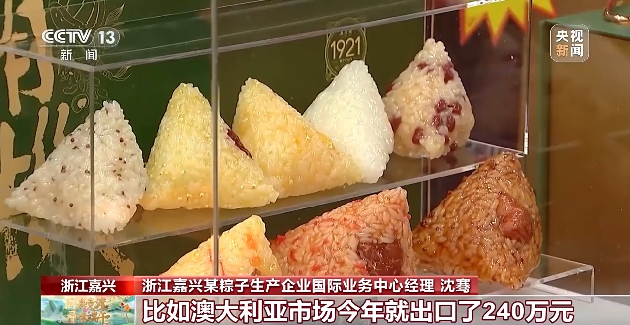 浙江嘉興某粽子生產(chǎn)企業(yè)國(guó)際業(yè)務(wù)中心經(jīng)理 沈騫:今年,我們開發(fā)了純植物餡料的素食粽子、低糖粽等細(xì)分品類,今年以來已經(jīng)累計(jì)出口了250余萬只粽子。東南亞是主要市場(chǎng),我們還開拓了加拿大、澳大利亞、新西蘭等10多個(gè)國(guó)家和地區(qū),比如澳大利亞市場(chǎng)今年就出口了240萬元,增長(zhǎng)比較明顯。