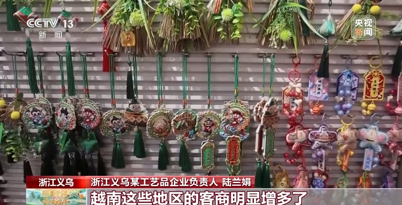 浙江義烏某工藝品企業(yè)負(fù)責(zé)人 陸蘭娟:以前香囊的消費(fèi)群體以國(guó)內(nèi)為主,這兩年,越來越多的外國(guó)客商來咨詢。前年賣出了15萬個(gè)左右,去年訂單翻了一番,有30萬個(gè)。那今年的訂單也明顯超過了過去,尤其是新加坡、馬來西亞、越南這些地區(qū)的客商明顯增多。