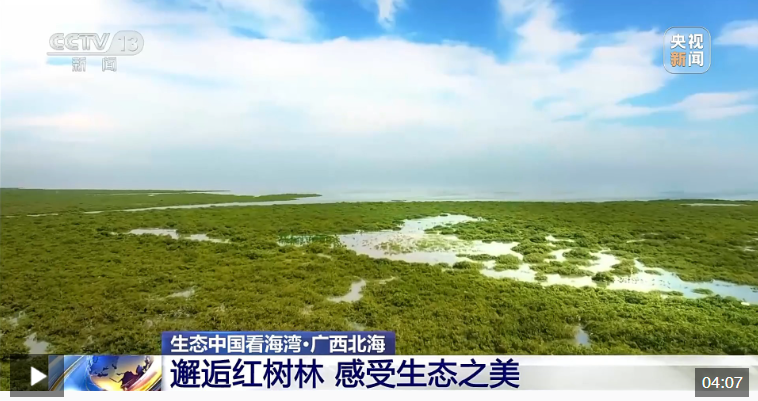 廣西北海濱海國家濕地公園管理處主任 郭國:紅樹林對我們整個海洋的周邊區(qū)域產(chǎn)生了一個很大的影響,包括鳥類、底棲生物,同時保護岸堤不受潮水的侵襲。