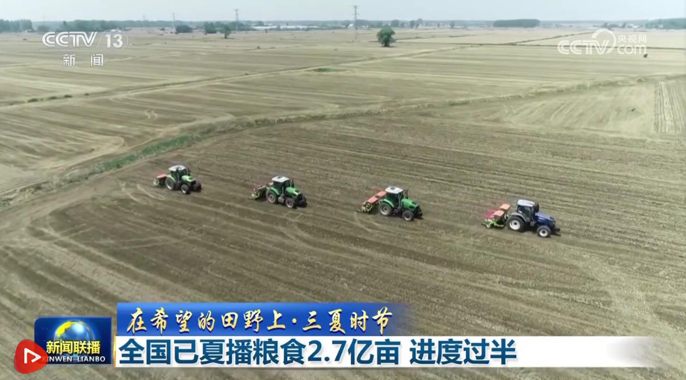 截至6月13日18時,全國已夏播糧食2.7億畝,主要以南方中晚稻、夏玉米、夏大豆等糧食作物為主。