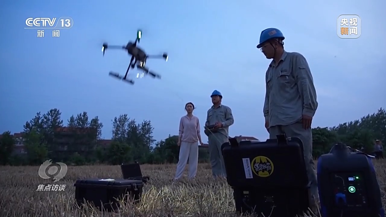 像放風(fēng)箏一樣,一個(gè)人從供電機(jī)牽線(xiàn),另一個(gè)人控制無(wú)人機(jī)飛行,兩人打好配合,燈隨著車(chē)走。經(jīng)過(guò)五次磨合試飛,600瓦的燈光終于刺破夜空,照亮了兩畝麥田的區(qū)域。供電所技術(shù)人員的駐守,讓吳從先家的小麥在暴雨來(lái)臨前全部入倉(cāng)。