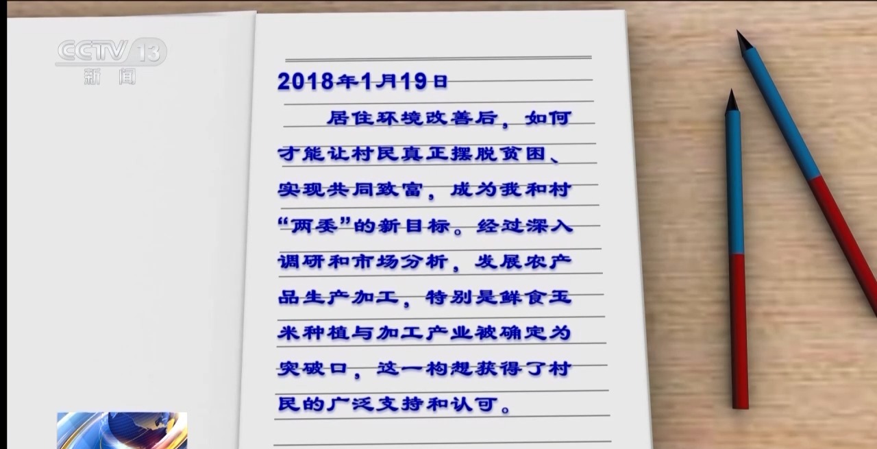 2018年1月19日工作日記:居住環(huán)境改善后,如何讓村民真正擺脫貧困、實(shí)現(xiàn)共同致富,成為我和村“兩委”的新目標(biāo)。經(jīng)過(guò)深入調(diào)研和市場(chǎng)分析,發(fā)展農(nóng)產(chǎn)品生產(chǎn)加工,特別是鮮食玉米種植與加工產(chǎn)業(yè)被確定為突破口,這一構(gòu)想獲得了村民的廣泛支持與認(rèn)可。