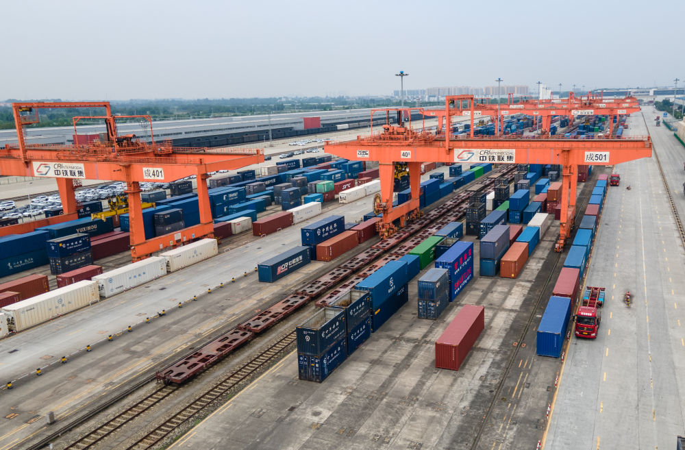 這是成都國(guó)際鐵路港(2024年6月13日攝,無(wú)人機(jī)照片)。 新華社記者 唐文豪 攝