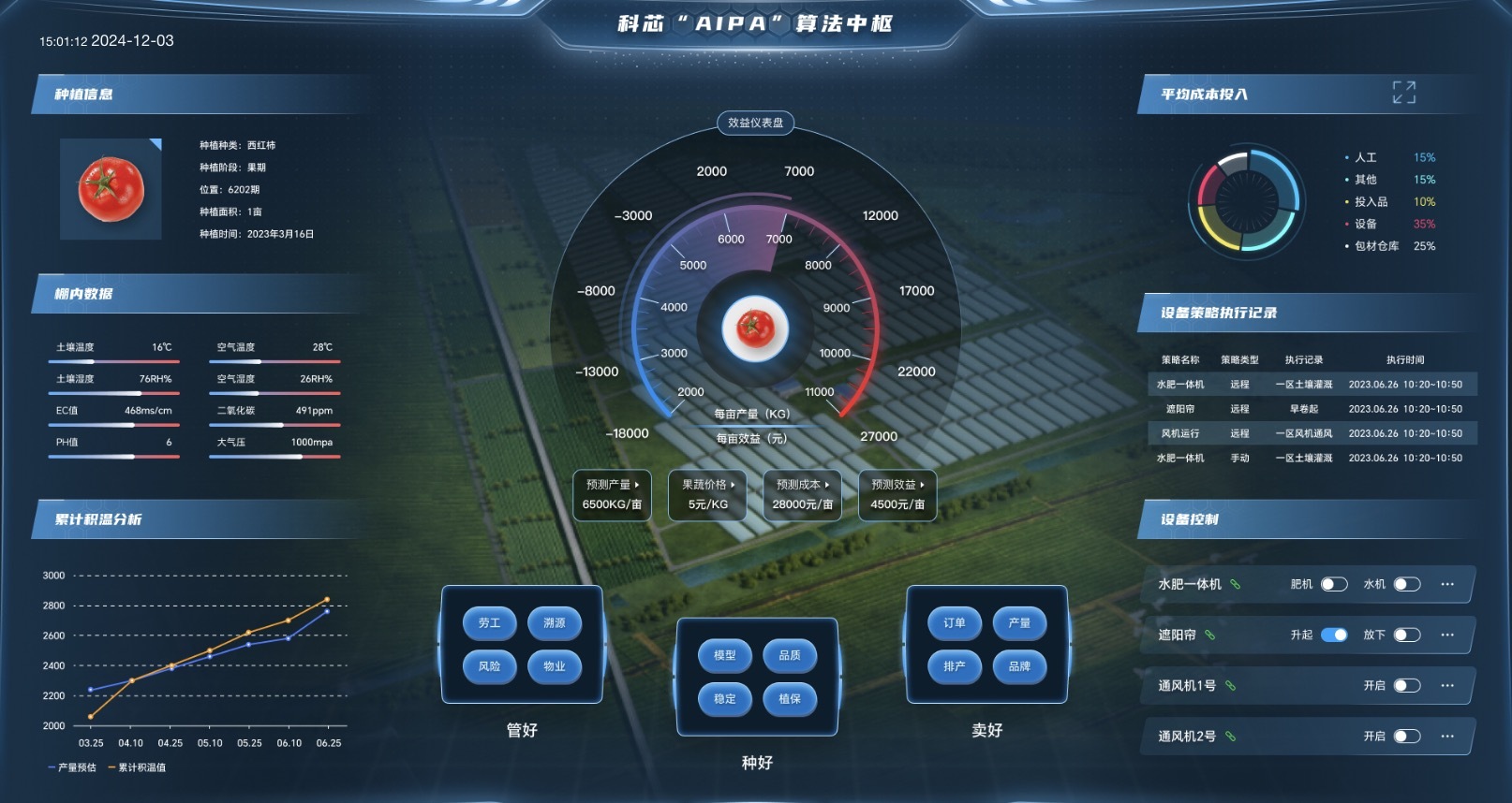 科芯自主研發(fā)的AIPA系統(tǒng),整合了多項(xiàng)新興技術(shù),能夠精準(zhǔn)描述作物的生長(zhǎng)動(dòng)態(tài),并作出生產(chǎn)力預(yù)測(cè)與效益評(píng)估。胡建龍形象地比喻:“這就像是給農(nóng)作物配備了一位24小時(shí)在線的‘智能管家’,它能根據(jù)作物的需求,自動(dòng)調(diào)整灌溉、施肥、遮陽(yáng)等操作,確保作物在最佳環(huán)境中生長(zhǎng)?!?/p>