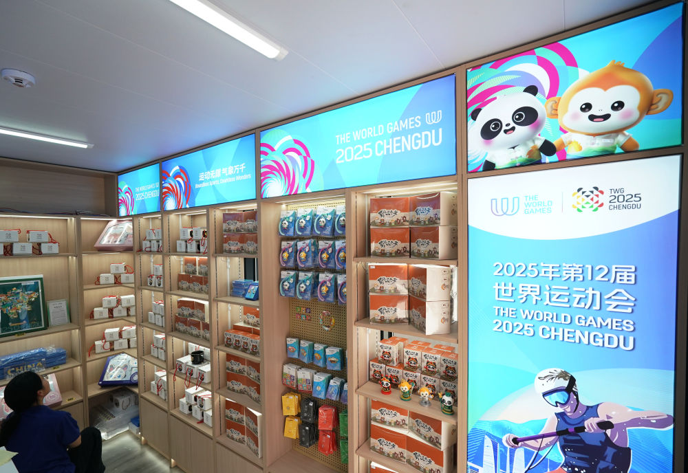 這是4月29日拍攝的成都世運(yùn)會(huì)官方特許商品零售店“北京首店”內(nèi)景。新華社記者 張晨霖 攝