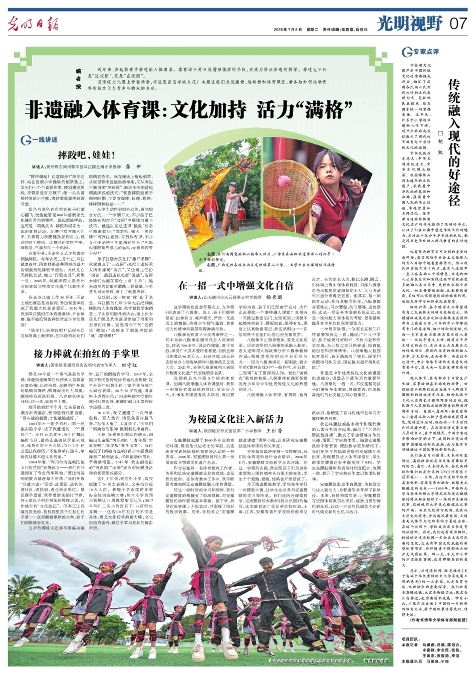 近年來,多地探索將非遺融入體育課。體育課不再只是增強體質(zhì)的手段,更成為傳承非遺的橋梁。非遺也不只是“進(jìn)校園”,更是“在校園”。