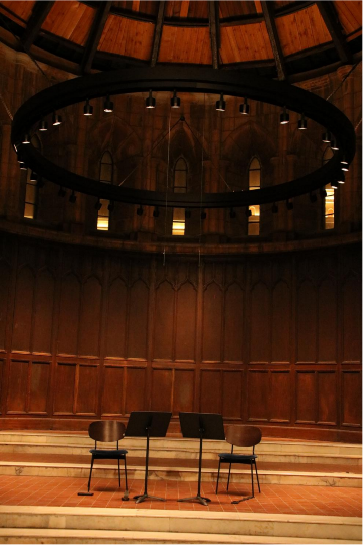 傍晚時分,夏風(fēng)習(xí)習(xí),天色黛青。我坐在棕色的椅子上,悠揚(yáng)的大提琴聲從穹頂上緩緩落下,浸潤在斑駁的石柱縫隙里,又飄浮于塵埃之上,圓形天窗下有一道水滴形狀的光斑。在這樣的傍晚,每個人都能感受到安里甘的美。