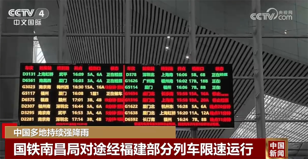 記者從國鐵南昌局了解到,為應(yīng)對管內(nèi)福建省多地持續(xù)強降雨天氣,11日,在合福高鐵、福廈高鐵、昌福鐵路、溫福鐵路、福廈鐵路等部分區(qū)段啟動暴雨、強對流天氣藍色預(yù)警,并對途經(jīng)福廈高鐵、溫福鐵路、福廈鐵路的部分旅客列車采取限速運行等安全措施,途經(jīng)上述區(qū)段的部分旅客列車出現(xiàn)不同程度晚點。鐵路部門將根據(jù)風(fēng)速雨情動態(tài)調(diào)整列車運行方案,提醒旅客密切關(guān)注鐵路12306平臺及車站公告,合理安排出行計劃。