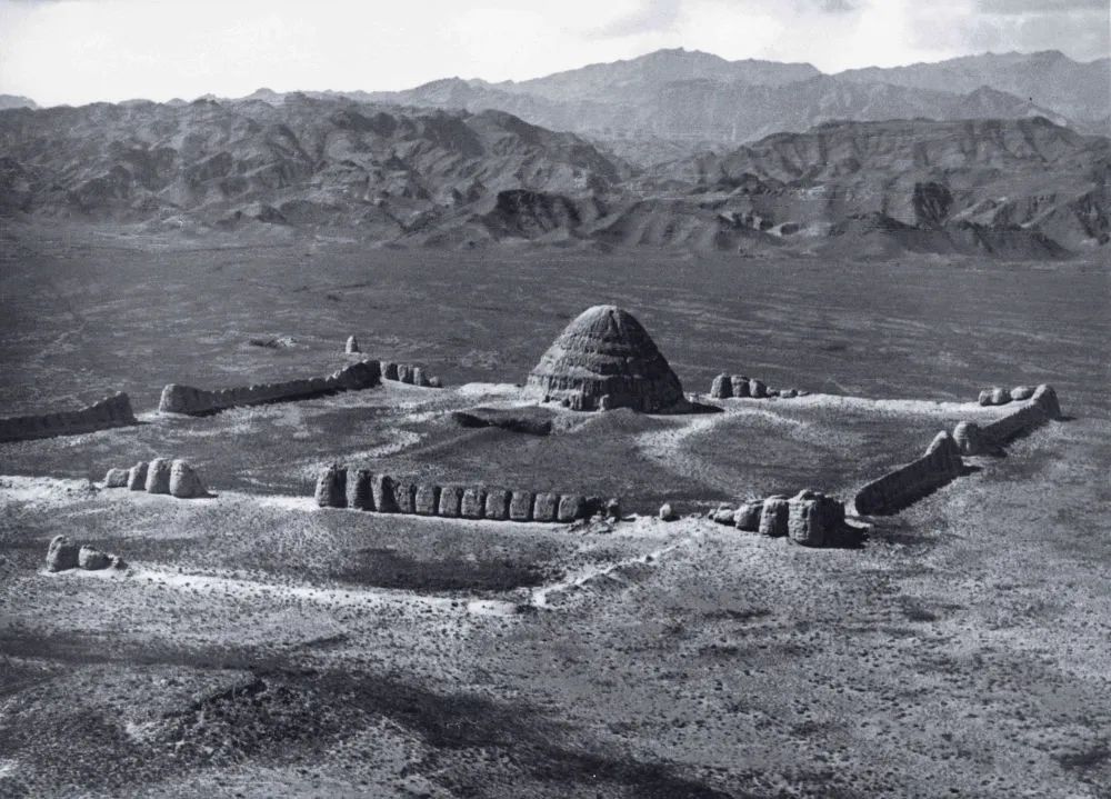 這是20世紀(jì)30年代,德國(guó)飛行員卡斯特飛越寧夏賀蘭山時(shí)拍攝的西夏陵3號(hào)陵(資料照片)。新華社發(fā)