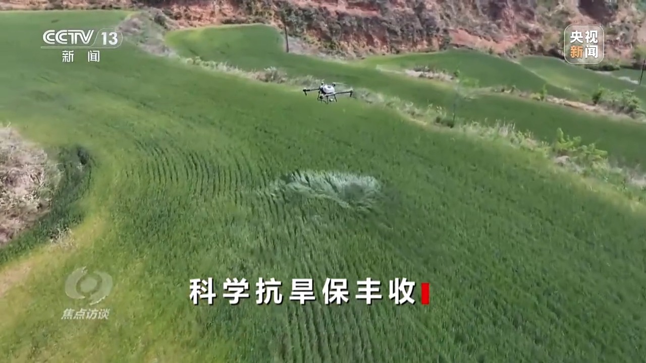 5月17日,40攝氏度高溫天氣到來的前兩天,當(dāng)?shù)囟鄠€小麥主產(chǎn)縣,一臺臺植保無人機(jī)低空掠過綠浪翻滾的麥穗,噴灑出細(xì)密的“藥雨、肥雨”,為久旱的麥田送來了及時雨。