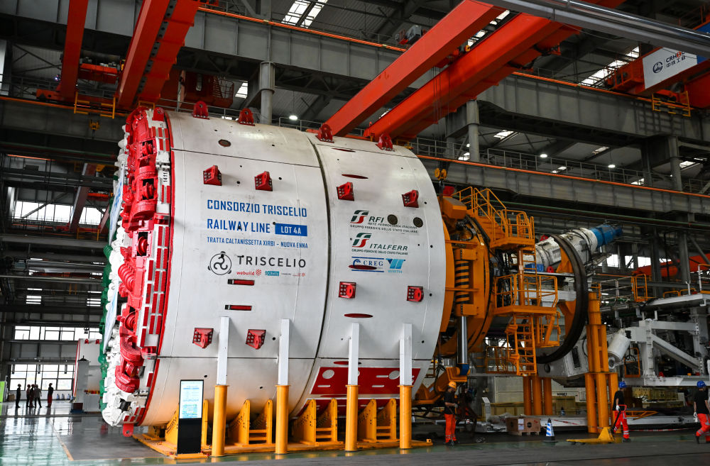 這是6月18日在天津自由貿(mào)易試驗區(qū)天津港東疆片區(qū)的中鐵工程裝備集團(天津)有限公司拍攝的即將出口意大利的盾構機。新華社記者 孫凡越 攝