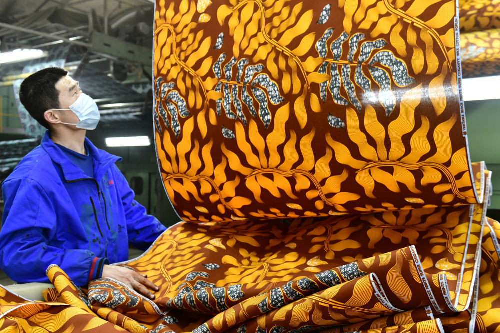 2025年2月25日,在位于山東省濱州市的愉悅家紡有限公司,工作人員在生產(chǎn)出口非洲的布匹。新華社記者 郭緒雷 攝
