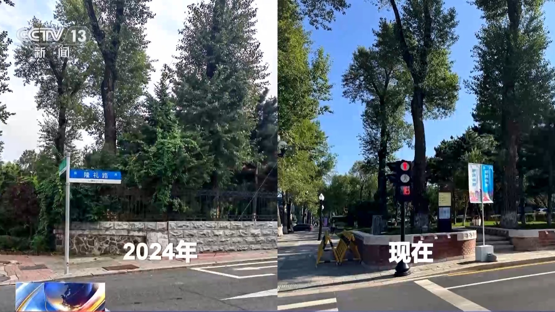 長春市文化廣播電視和旅游局局長 張輝勇:原來的圍墻直接立到了現(xiàn)在的人行道邊,人行道邊還有綠籬,實(shí)際上這條街能夠用于行走的空間是非常有限的。這一條街上13個(gè)院落也是13個(gè)產(chǎn)權(quán)單位,把這13個(gè)院落的圍墻給它打開。