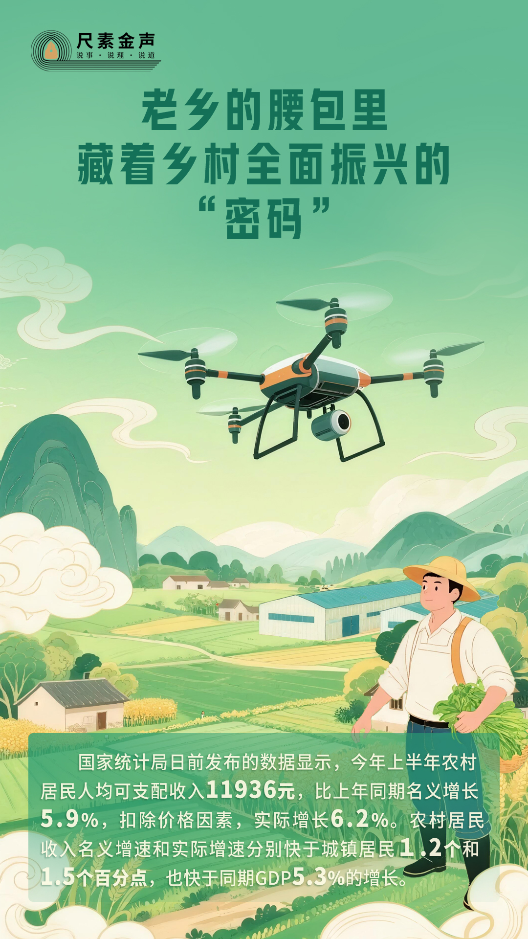 今年上半年農民收入數(shù)據(jù)中還有一個值得關注,就是城鄉(xiāng)居民人均可支配收入之比由上年同期的2.45降至2.42。城鄉(xiāng)融合發(fā)展,要持續(xù)縮小城鄉(xiāng)居民收入差距,關鍵在于持續(xù)提高農村居民收入。推動農民收入持續(xù)穩(wěn)定增長,不僅有助于促進共同富裕,也有助于暢通城鄉(xiāng)經(jīng)濟循環(huán)。