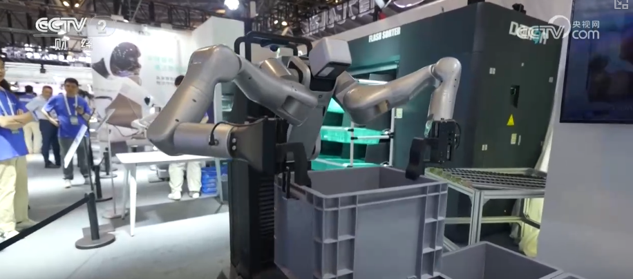 記者在人工智能大會現(xiàn)場觀察到,2025年,人形機器人已經(jīng)正式從展覽展示變?yōu)樯逃寐涞亍,F(xiàn)場展示的多款機器人都已經(jīng)在產(chǎn)線投入使用,機器人快速演進的背后是大量的數(shù)據(jù)采集和訓(xùn)練。