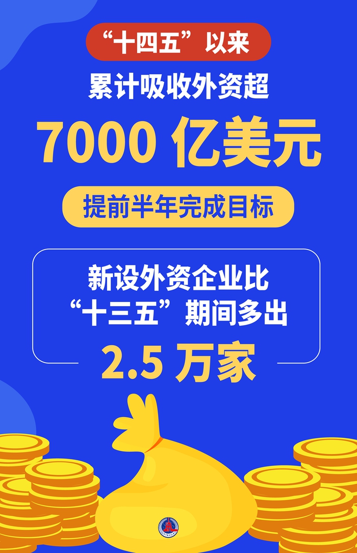 復(fù)雜嚴(yán)峻的國(guó)際經(jīng)貿(mào)環(huán)境下,我國(guó)吸引外資交出亮眼答卷——“十四五”以來,累計(jì)吸收外資超7000億美元,提前半年完成目標(biāo),新設(shè)外資企業(yè)比“十三五”期間多出2.5萬家。