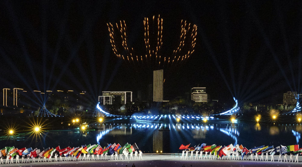 8月7日,演員在開幕式現(xiàn)場(chǎng)表演。新華社記者 杜子璇 攝