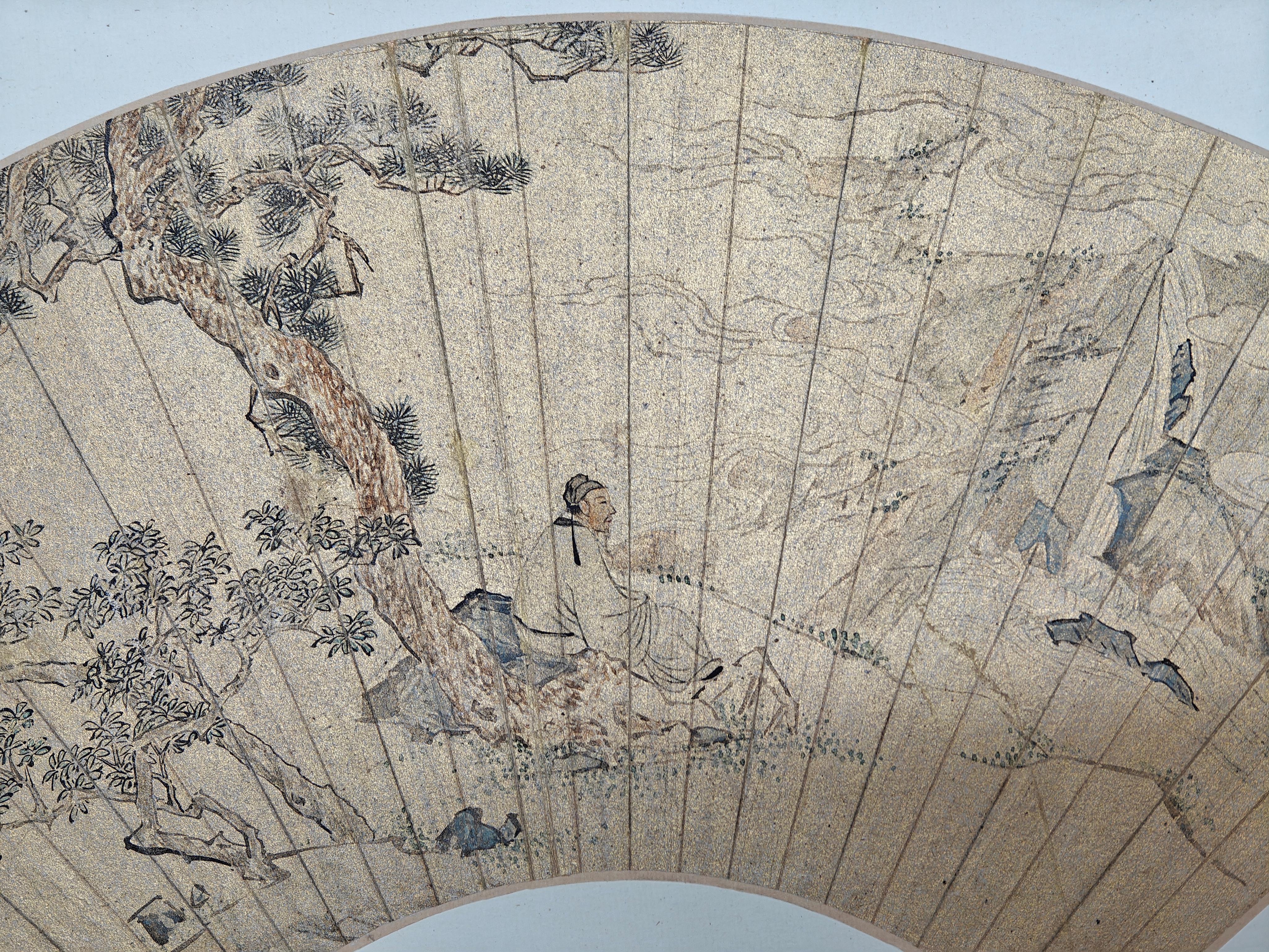 △明 沈周(款)山水人物大冊(之六 桐陰觀鶴),天津博物館藏。