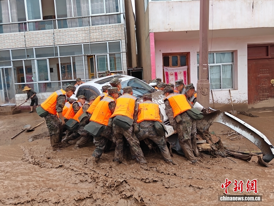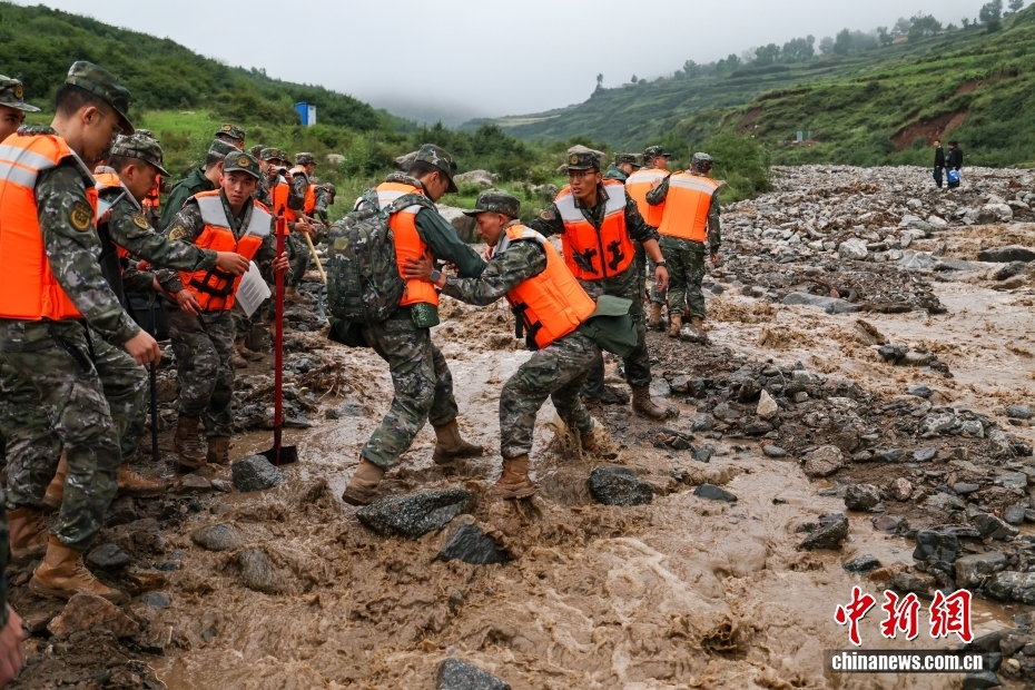 截至8日晚,武警甘肅總隊投入396名兵力開展道路清淤、人員搜救、搬運(yùn)物資等救援行動,共轉(zhuǎn)移群眾171人、搜救被困群眾5人、救治受傷群眾2人、清理危房6處、轉(zhuǎn)移受損車輛12輛,累計清理淤泥、山石700余方,搜索河道6公里、搶通道路2300米。圖為8月8日,武警甘肅總隊機(jī)動支隊官兵挺進(jìn)災(zāi)區(qū)甘肅省蘭州市榆中縣馬坡鄉(xiāng)舊莊溝村展開救援。劉昆 攝