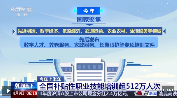 今年1至6月,全國完成補貼性職業(yè)技能培訓(xùn)超512萬人次,新增取得高級工及以上職業(yè)資格證書或職業(yè)技能等級證書185.1萬人次,其中技師及以上13.3萬人次。