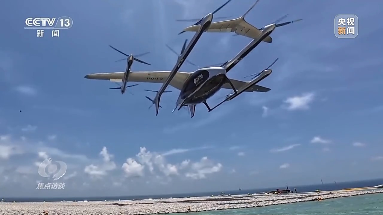 這天,一架兩噸重的電動垂直起降航空器搭載著水果和藥品,從深圳市區(qū)起飛,歷經(jīng)58分鐘的跨海域飛行,抵達(dá)距深圳海岸線150公里的海上油氣平臺,為平臺工作人員送去物資。