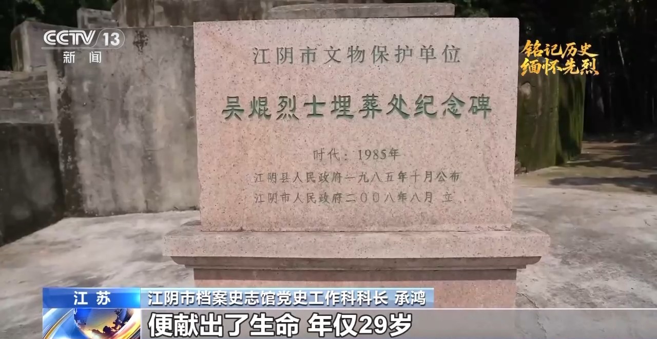 在江蘇江陰三十三山環(huán)抱的定山深處,一方青石碑肅立林間,“吳焜烈士埋葬處紀(jì)念碑”十個(gè)大字遒勁如劍。