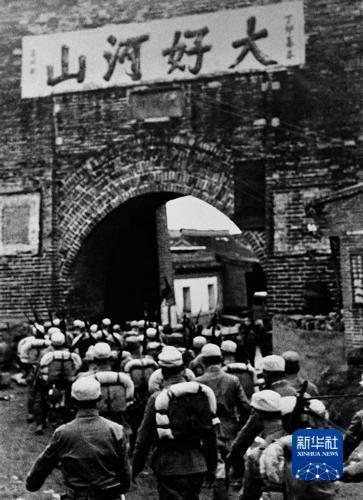 1945年,收復(fù)山海關(guān)的八路軍列隊(duì)通過城樓。張進(jìn)學(xué) 攝