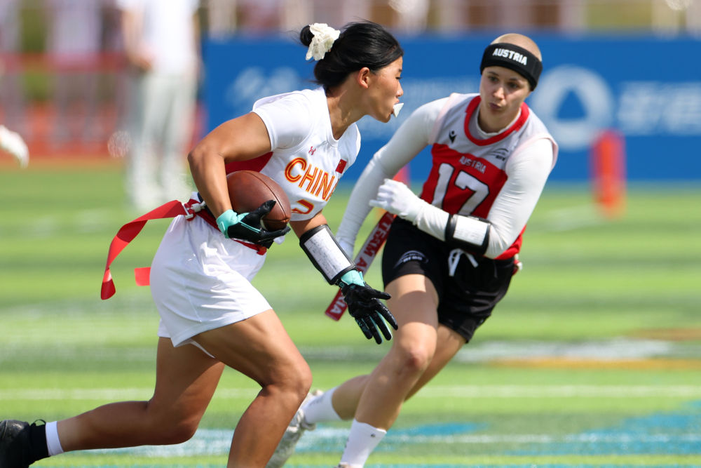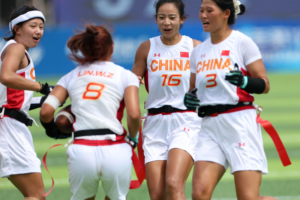 成都世運(yùn)會(huì)女子腰旗橄欖球比賽首日,中國隊(duì)上演正式比賽首秀。這支組隊(duì)集訓(xùn)僅3個(gè)多月的“神秘之師”,在首場迎戰(zhàn)世界排名第四的奧地利隊(duì)的比賽中,只以2分惜敗。
