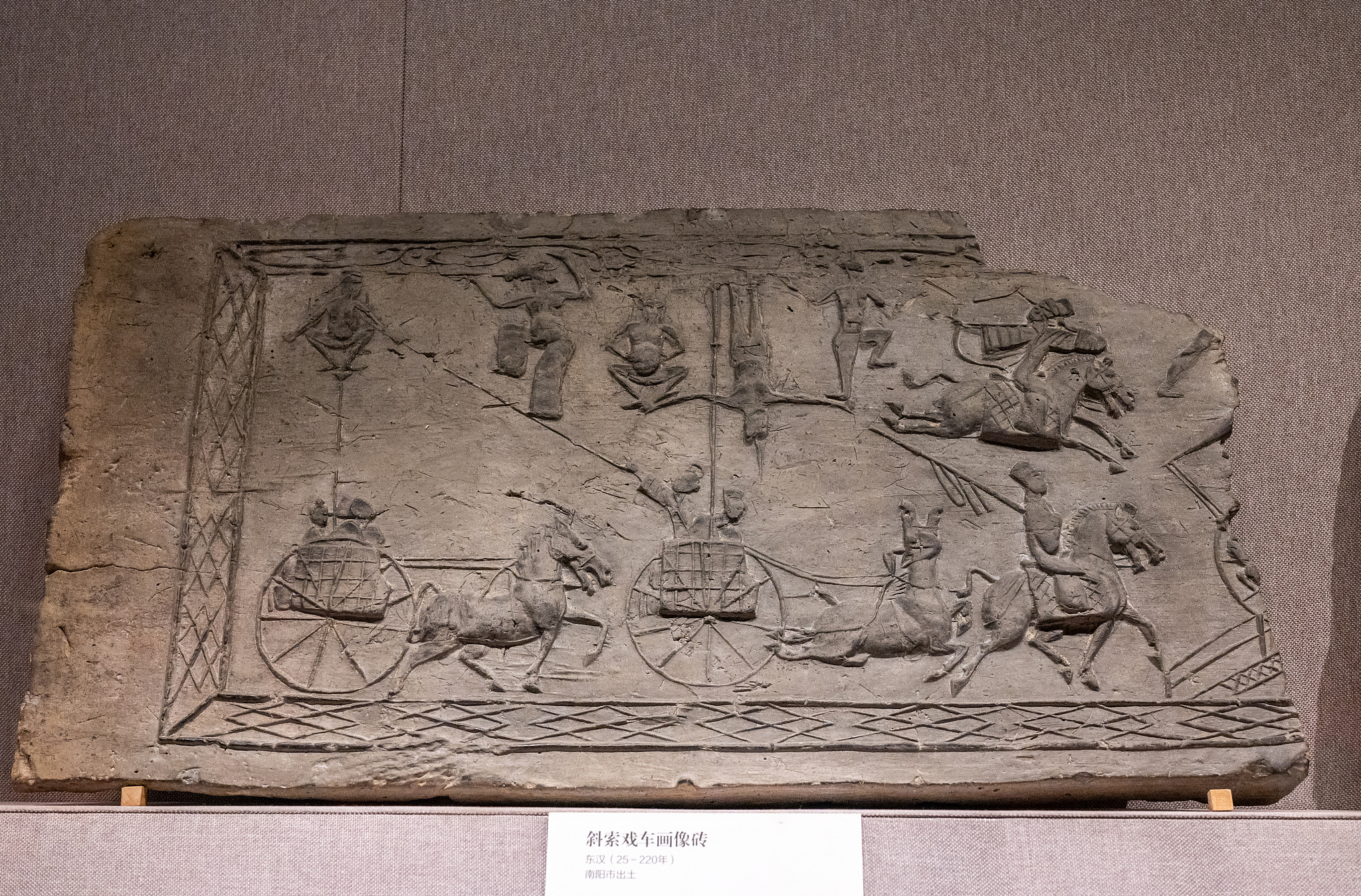 △漢代平索戲車車騎出行畫像磚 中國國家博物館藏