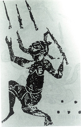 下層右側(cè)的“領(lǐng)隊(duì)”騎著馬扛旗前行