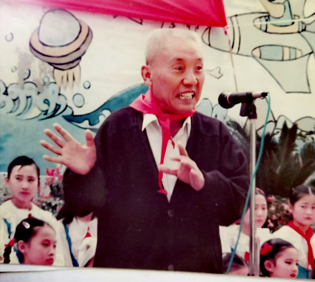 ↑李德富為漢口鄱陽街小學(xué)師生進(jìn)行愛國主義教育演講