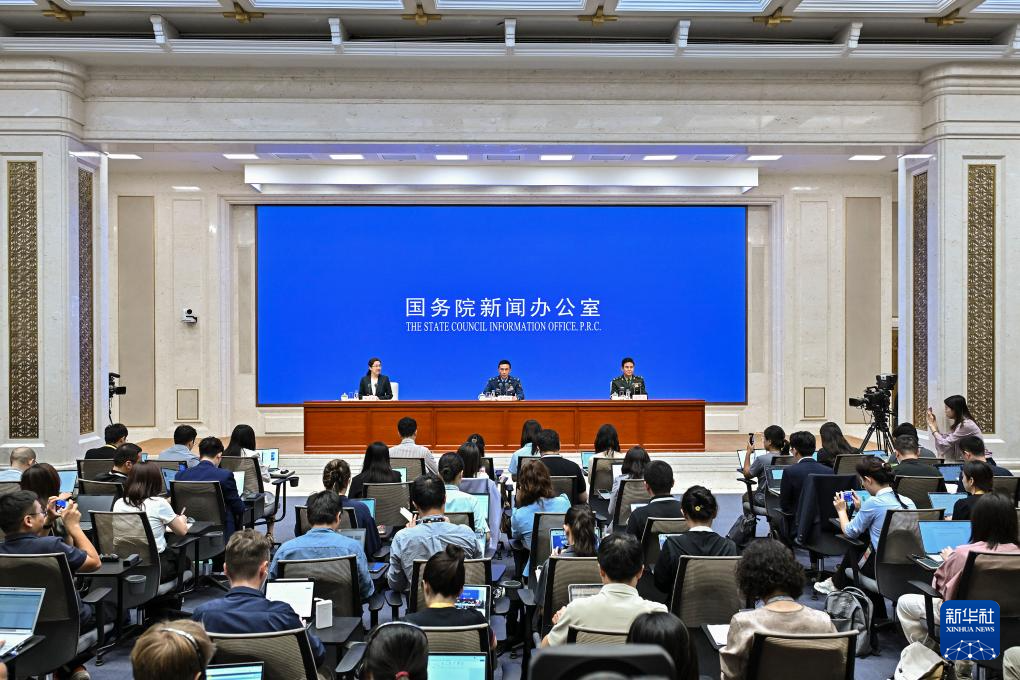 8月20日,國(guó)務(wù)院新聞辦公室在北京舉行新聞發(fā)布會(huì),閱兵領(lǐng)導(dǎo)小組辦公室副主任、中央軍委聯(lián)合參謀部作戰(zhàn)局少將副局長(zhǎng)吳澤棵,中國(guó)人民解放軍中部戰(zhàn)區(qū)閱兵指揮機(jī)構(gòu)辦公室常務(wù)副主任、政治工作部少將副主任徐貴忠介紹閱兵準(zhǔn)備工作有關(guān)情況,并答記者問。新華社記者 李鑫 攝