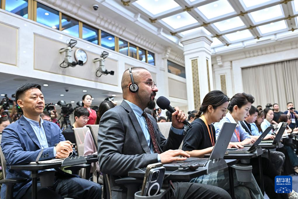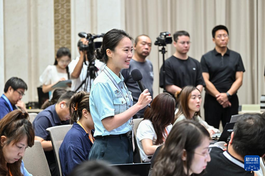 8月20日,國(guó)務(wù)院新聞辦公室在北京舉行新聞發(fā)布會(huì),閱兵領(lǐng)導(dǎo)小組辦公室副主任、中央軍委聯(lián)合參謀部作戰(zhàn)局少將副局長(zhǎng)吳澤棵,中國(guó)人民解放軍中部戰(zhàn)區(qū)閱兵指揮機(jī)構(gòu)辦公室常務(wù)副主任、政治工作部少將副主任徐貴忠介紹閱兵準(zhǔn)備工作有關(guān)情況,并答記者問。這是記者在現(xiàn)場(chǎng)提問。新華社記者 李鑫 攝