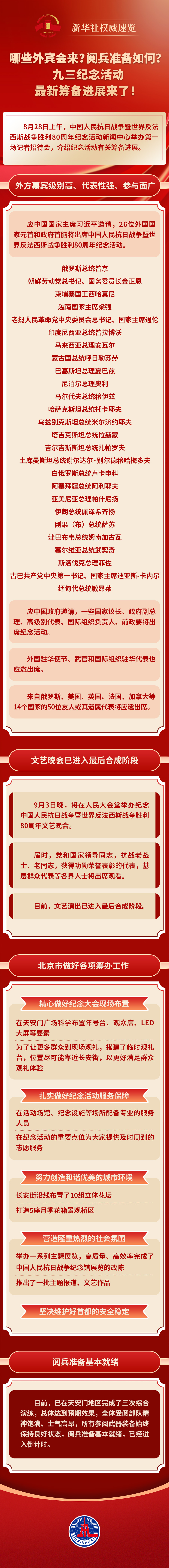 新華社權(quán)威速覽丨哪些外賓會(huì)來?閱兵準(zhǔn)備如何?九三紀(jì)念活動(dòng)最新籌備進(jìn)展來了!