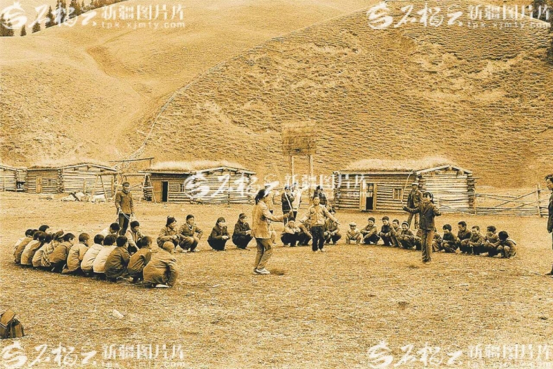 新疆圖片庫里,一張泛黃的老照片,生動再現(xiàn)了烏魯木齊縣水西溝鎮(zhèn)廟爾溝中學(xué)的“孩提”時光:光禿禿的大山腳下,幾座松木搭建起來的簡易房屋,矮趴趴“長”在草場上。遠(yuǎn)處空地上,一群學(xué)生們蹲在地上圍成圈,正在觀看幾個同學(xué)進(jìn)行跳繩比賽。